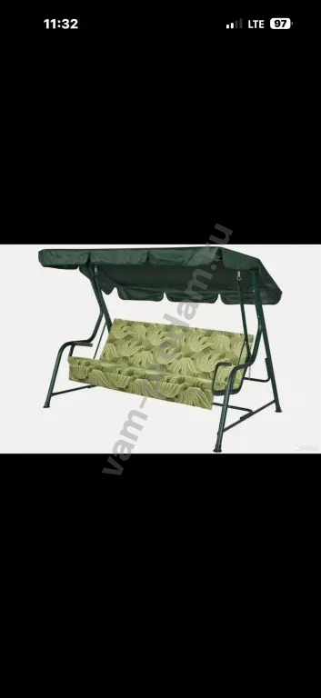 Лаконичная обивка зеленого цвета с растительным орнаментом прекрасно сочетается с каркасом и тентом. Качели прекрасно впишутся в ландшафт любого сада. Качели обладают многими качествами, присущими всем нашим продуктам: