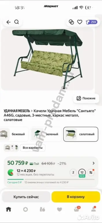 Тип: Подвесные кресла, качели