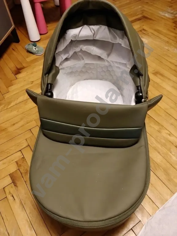 Здравствуйте, продаю коляску б/у после одного ребёнка «Riko Basic» 3 в 1 из экокожи в красивом зелёном цвете. Коляску покупали весной 2024 года. Люлька в идеальном состоянии, проездили на ней с конца мая по сентябрь 2024 года. В ней лежит хороший ортопедический матрас кокосовый. Второй блок в хорошем состоянии, есть повреждения на капюшоне, там ребёнок кусал, но они незначительные, можно замазать, заказав на маркетплейсе экокожу жидкую (стоит 300 р), и небольшие потёртости на шасси, всё это по желанию можно закрасить или что-то сделать, в остальном коляска идеальная.