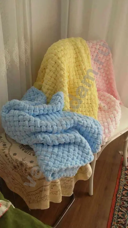 Идеальный подарок, окутанный нежностью! ☁️ Мятный плед Посмотрите на эту текстуру! Это не просто плед, это воплощение мягкости. Мы использовали легендарную плюшевую пряжу Alize Puffy нежного мятно-голубого оттенка, чтобы создать плед, который дарит ощущение “облака”. На фото вы видите: Готовый плед: Аккуратно сложенный, перевязанный белоснежной атласной лентой, готовый стать идеальным подарком.