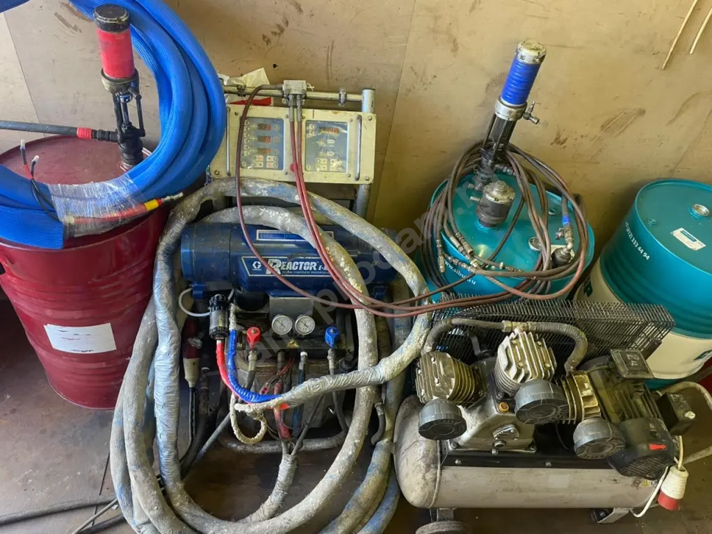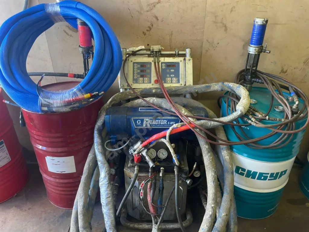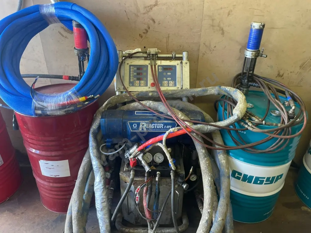 реактор exp 2. пистолет fusion AP. оригинальные шланги 18 м, возможность доукомплектовать оригинальными шлангами по максимуму. пневмомешалка. компрессор. t2 насосы. установка полностью готова к работе. цена 1.500000 руб
