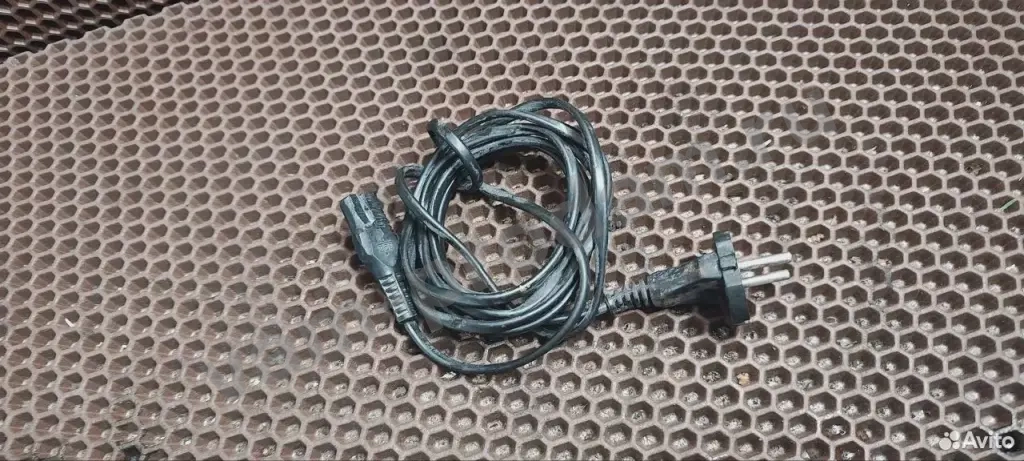 Кабель питания под плоский штепсель, для старой техники. Слегка обтёсан, работоспособность не подтверждена. Проверить не на чем.