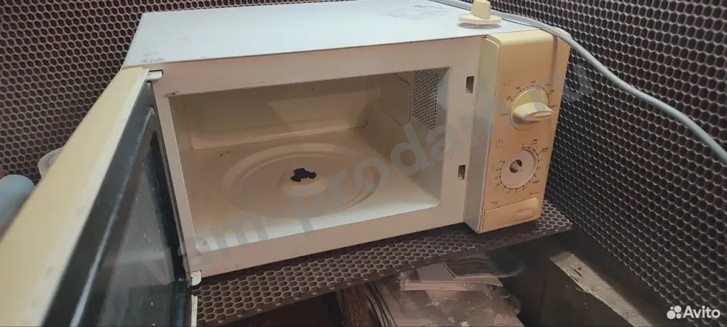 В один момент перестала работать, не стали разбираться, готовы продать на запчасти или на починку. Скорее всего вышел из строя магнитрон. Так же отпала ручка.