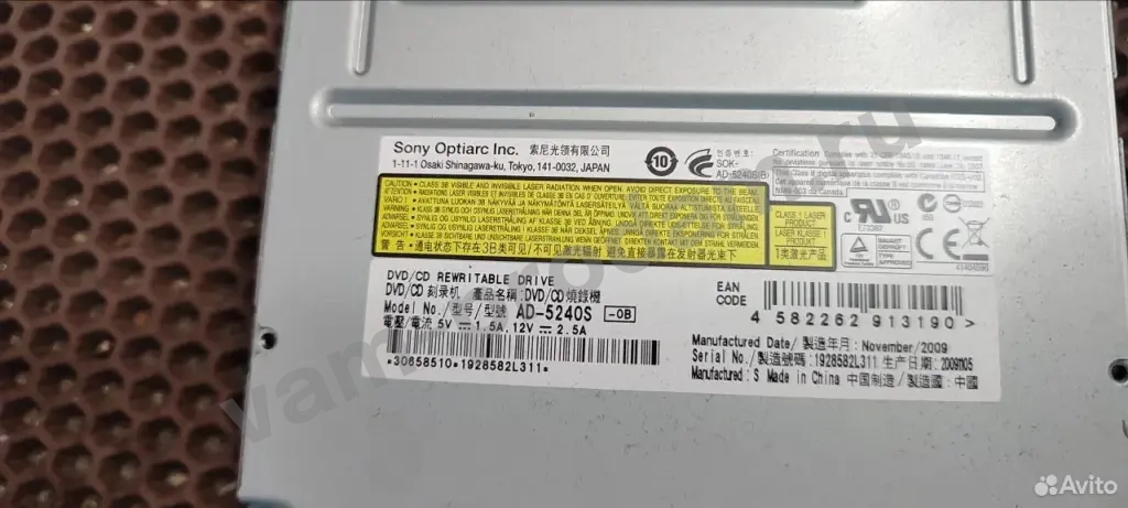 Sony DVD/CD rewritable drive model:AD-5240S