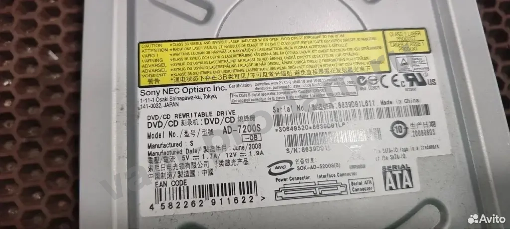 Продам для пк DVD привод Sony Nec Optiarc AD-7200S, 3,5", б/у,