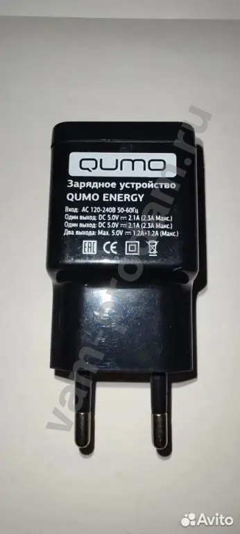 Сетевое зарядное устройство на 2 USB Qumo energy