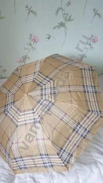 Складной ручной зонт "Super Mini" бежевого цвета в клетку.