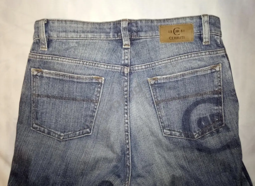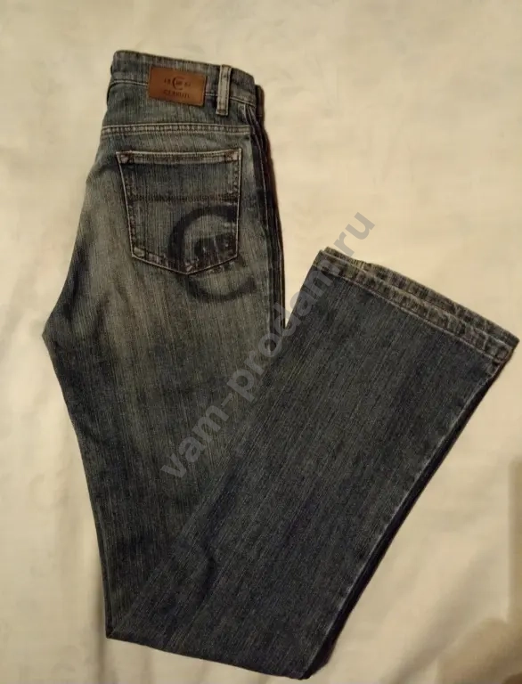 Джинсы CERRUTI, синие, бу, размер 26, талия половинка в спокойном состоянии 37см, бёдра половинка в спокойном состоянии 45см, длина по боковом шву 107см.