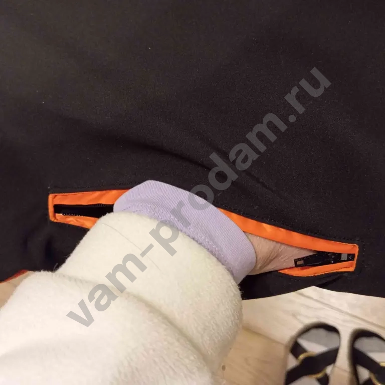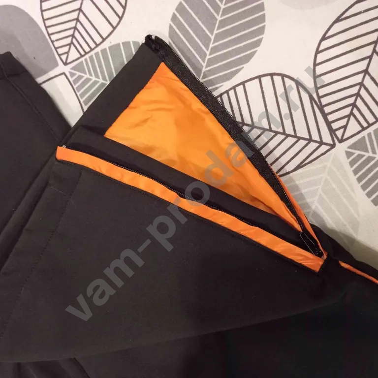 Низ брюк снабжен "юбкой" с резинкой по низу для защиты от снега и молниями снаружи. "Юбка" не очень налезает на горнолыжный сапог, но в целом функцию свою выполняет.