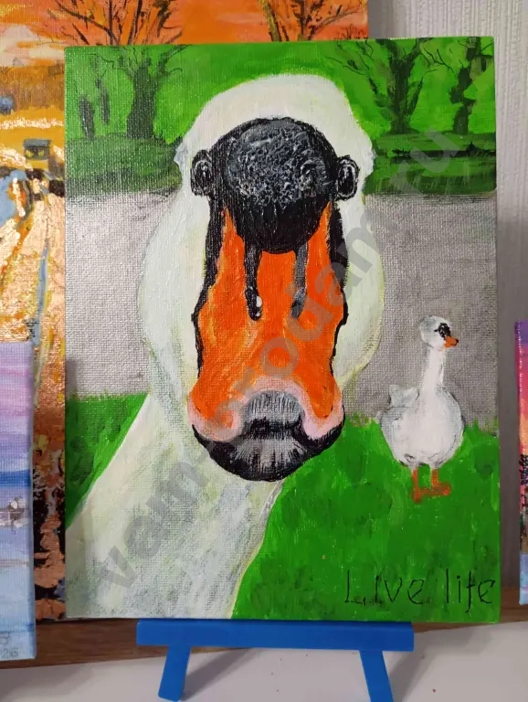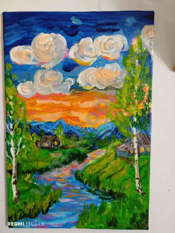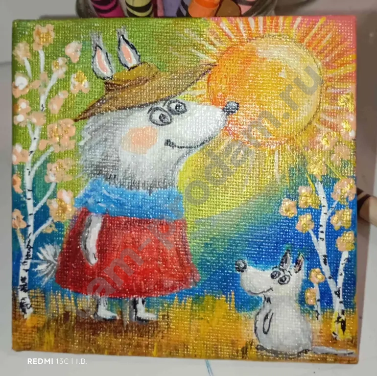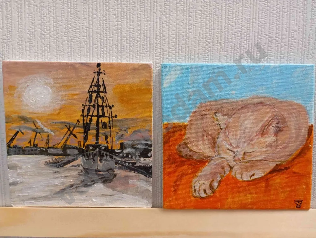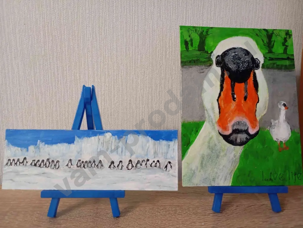 Маленькие картины от 7*7 до 10*15см продаются в комплекте с маленьким мольбертом (дерево или пластик)