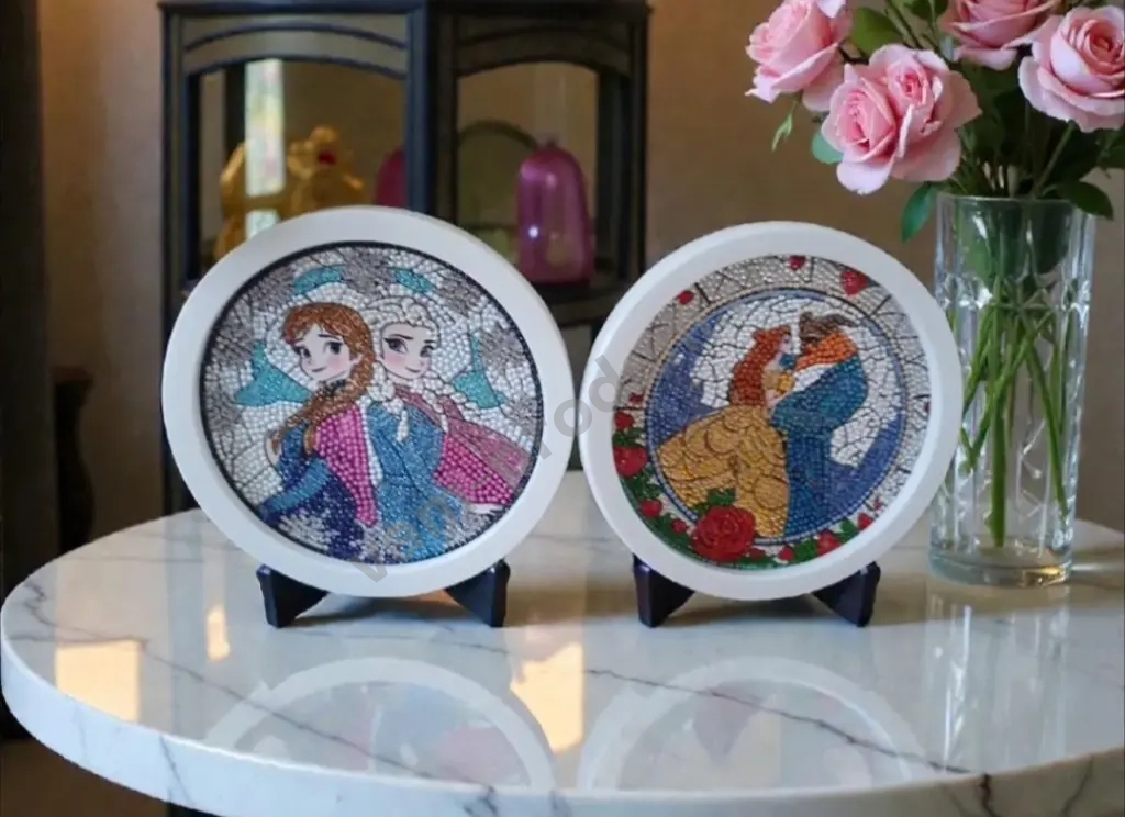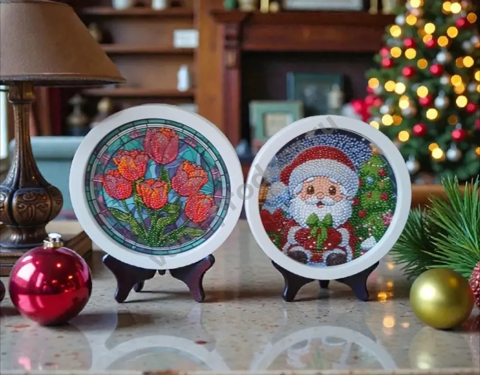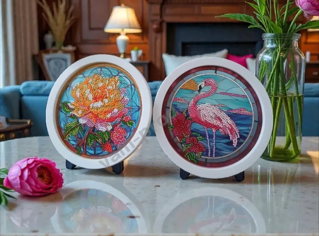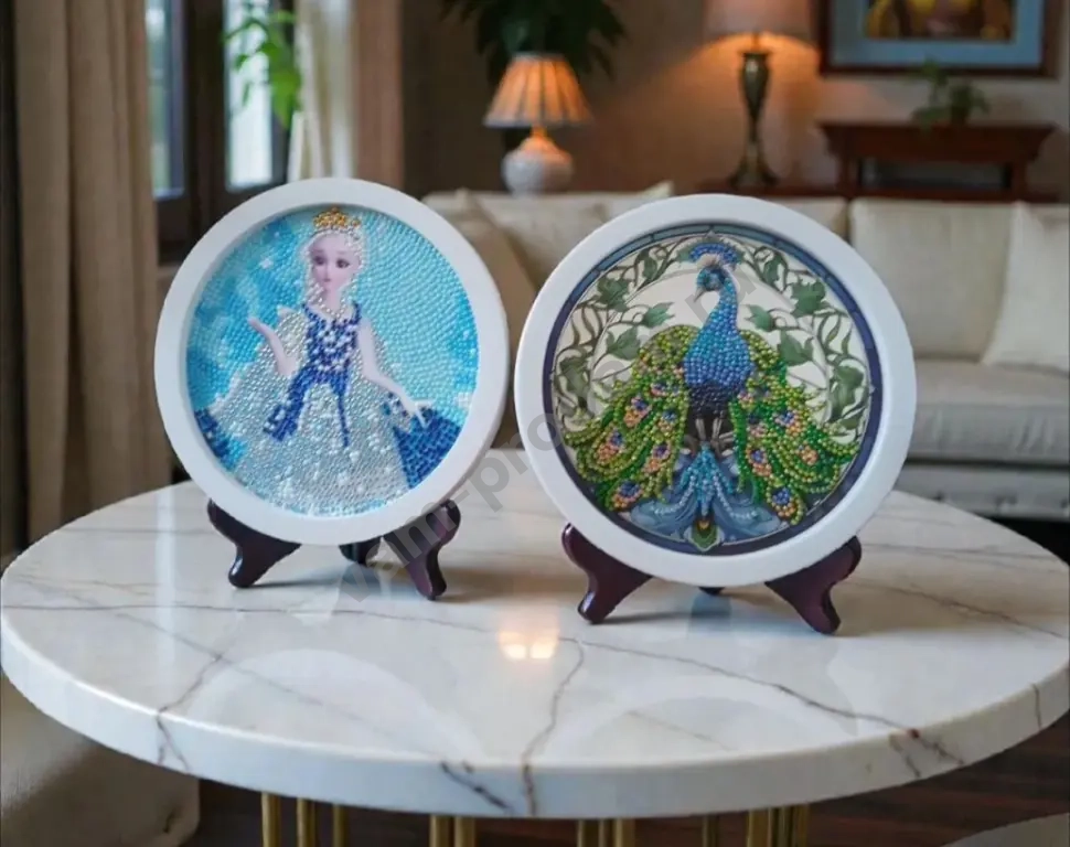 🎨 Круглая рамка и удобная подставка делают её идеальным украшением для любого интерьера.