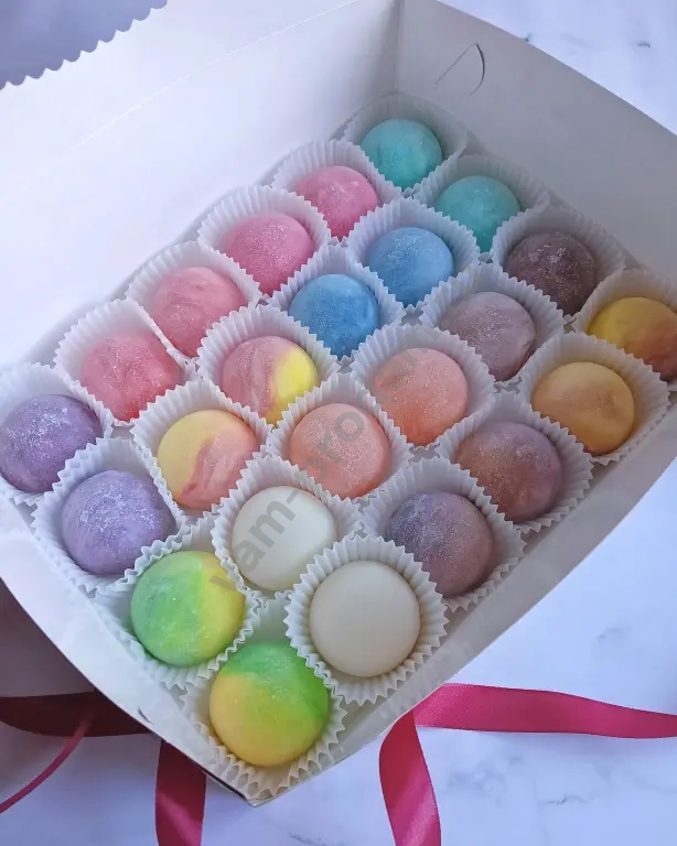 Моти это привычная десертная начинка в необычном тягучем сладковатом тесте из клейкого риса. Сочетание оболочки и начинки превращается в нежнейшее вкусовое наслаждение 🥰