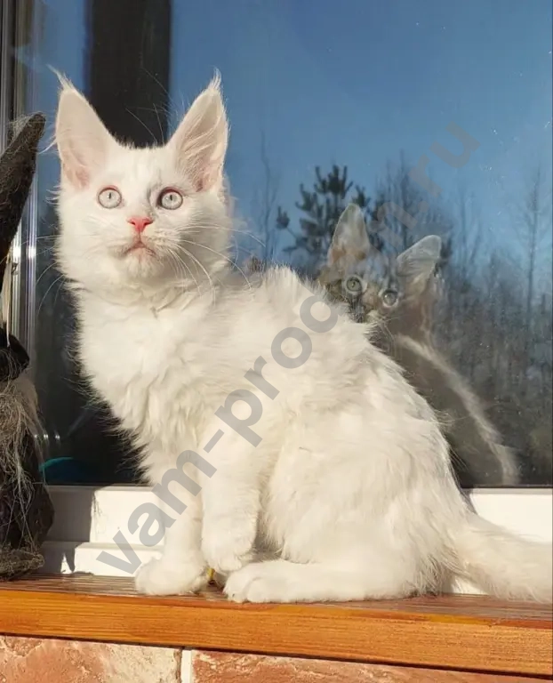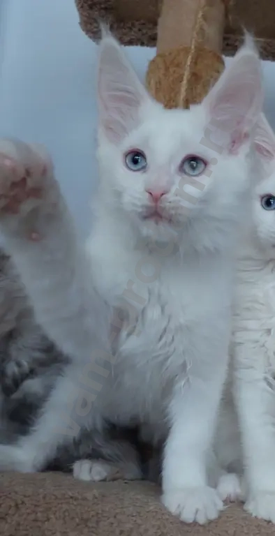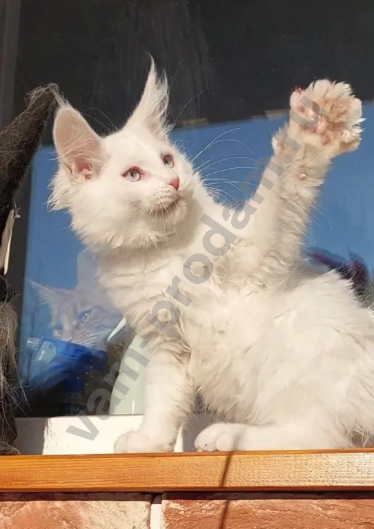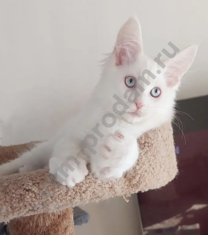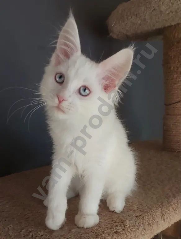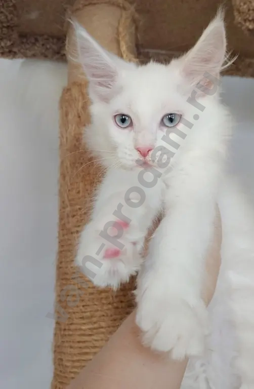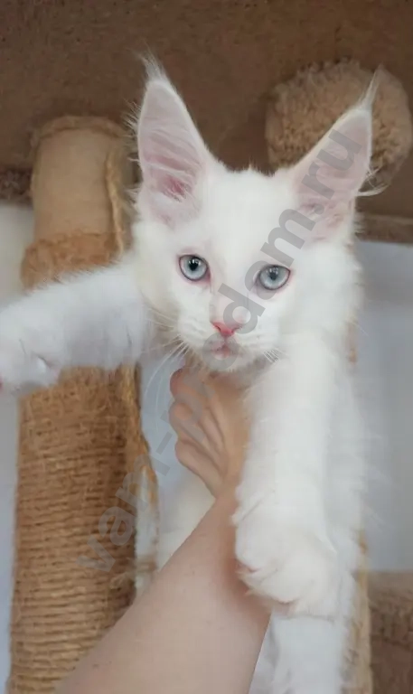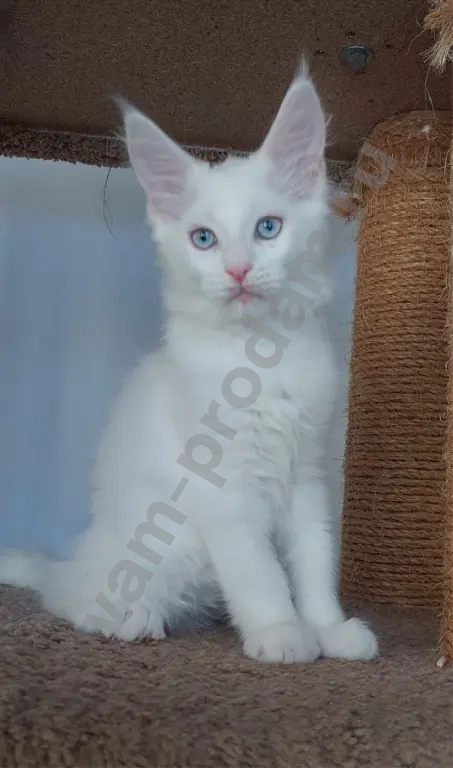 Мальчик мейн-кун белый с голубыми глазами, родился 11.11. Проблем со слухом нет!