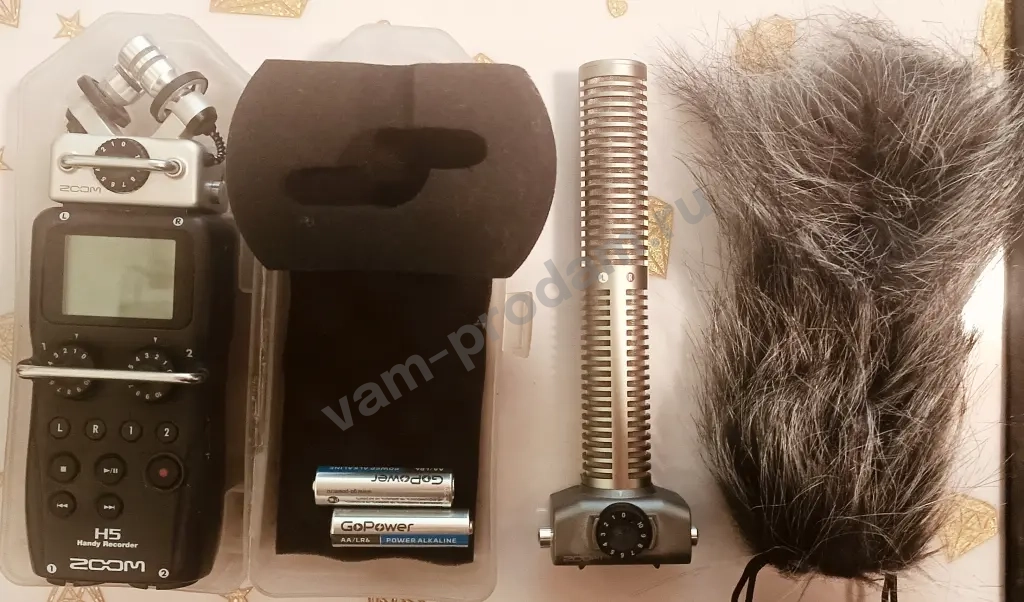 Продается комплект : рекордер zoom h5, пластиковый бокс для переноски, ветрозащита для XYH-5 микрофона, микрофон-пушка SSH-6 (подходит для рекордера), ветрозащита для SSH-6.