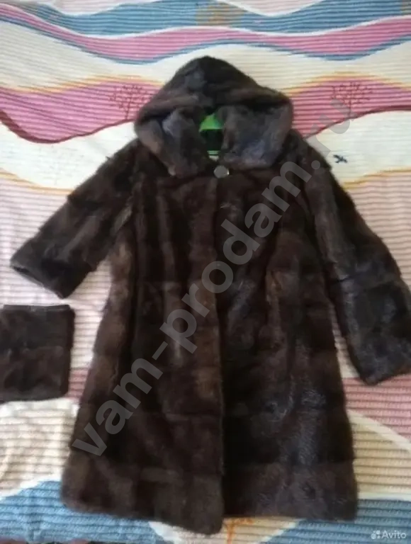 Продается норковая шуба с капюшоном, с двумя сёмными рукавами (каждый по 20 см в длину) и с карманами, бренд Self Made, размер 44-46 (S/M). Шуба выполнена из натурального меха насыщенного коричневого цвета. Высота шубы составляет 90 см, длина рукава — 60 см, без съёмного рукава — 40 см, ширина по груди — 50 см. Шуба в хорошем состоянии, следов носки нет, но есть незначительный дефект пришитой бирки в внутри шубы (немного отшита), а так шуба выглядит хорошо и красиво.