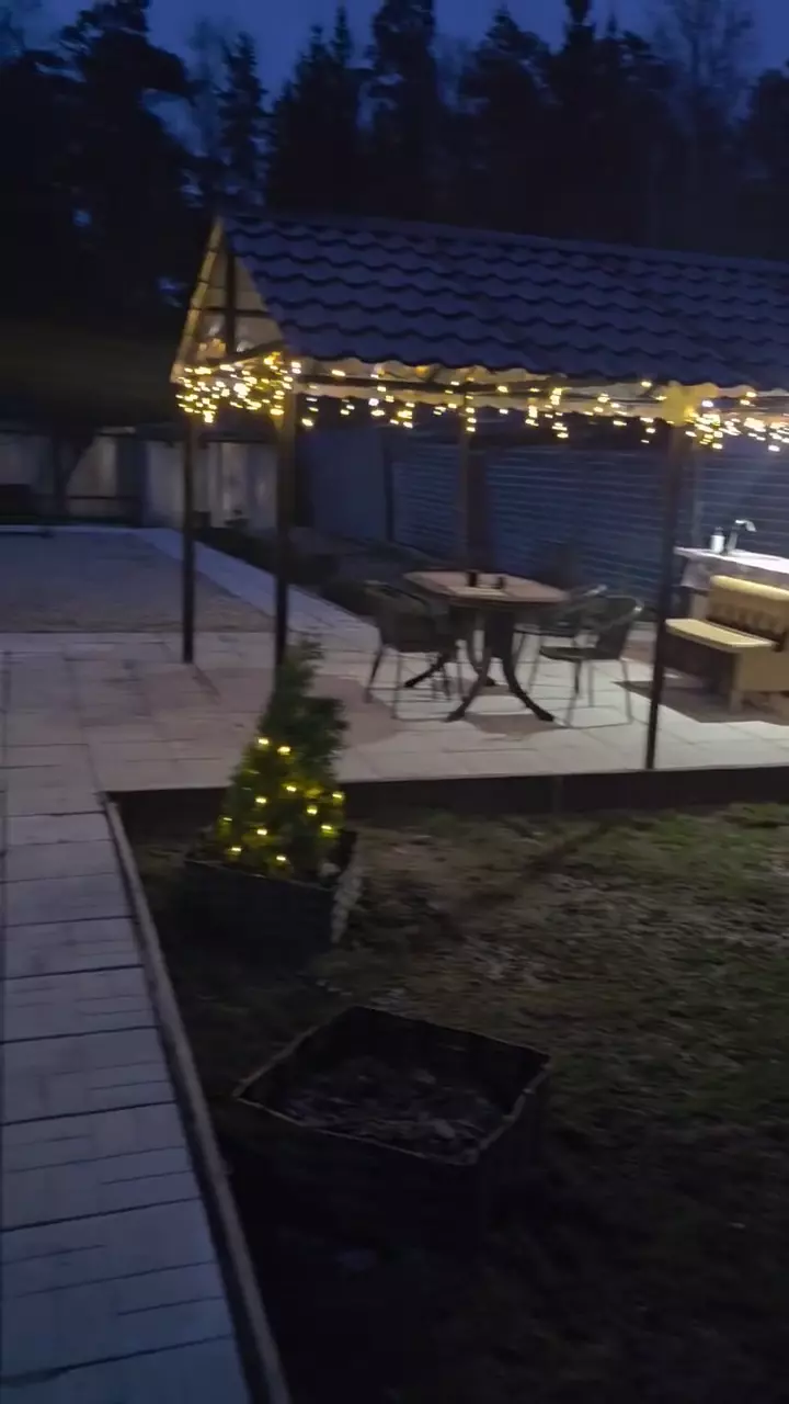 1й эт,кухня - гостиная 36м2, стены вагонка, пол - доска, на кухне ленолиум, в зоне отдыха - ковер, камин на дровах, отопление газовый котел, газ. плита 4 комф., вода из скважины, кухонный гарнитур. Канализация - септик. Диван угловой200х140см, стол 160х80см - раздвигается на 8 человек, столовая группа + 8 стульев. Холодильник Атлант, стиральная машинка LG,
