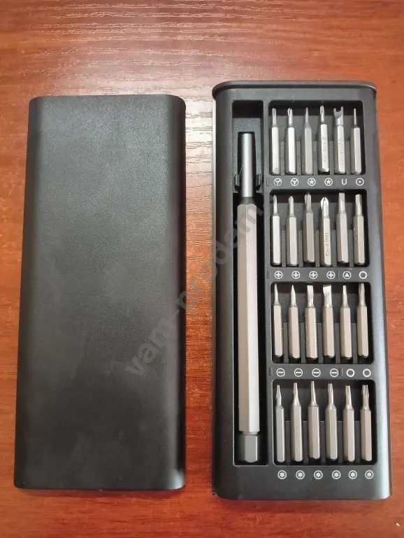 многофункциональный набор в инструментов для выполнения точных работ с мелкими крепёжными элементами. Используется для ремонта и разборки мелкой техники, гаджетов, часов, очков, ноутбуков, смартфонов, игровых приставок и других устройств, где требуются миниатюрные отвёртки с разными профилями наконечников.