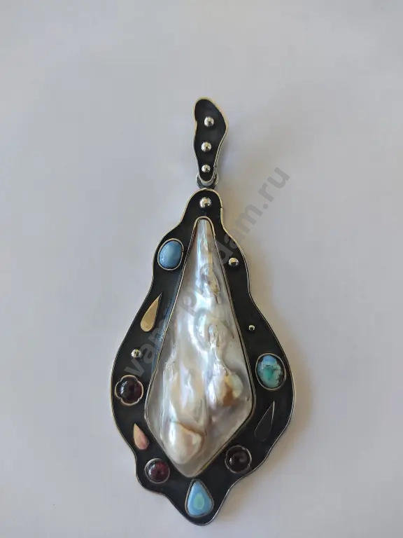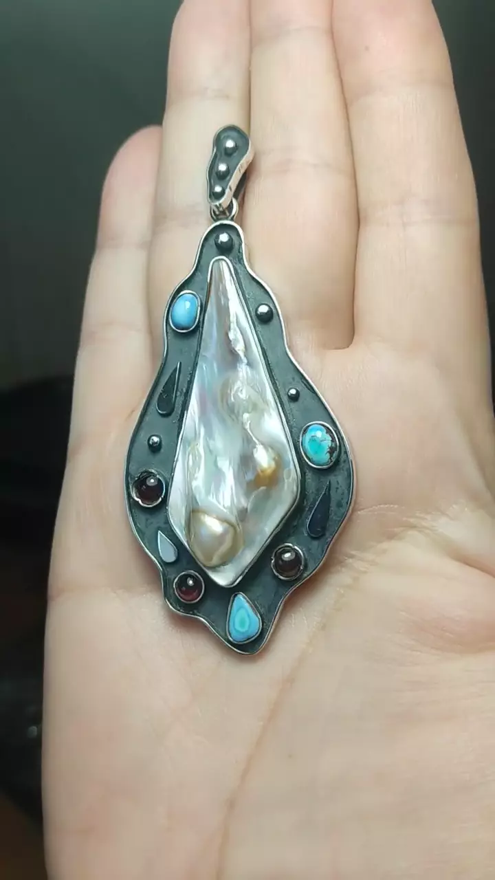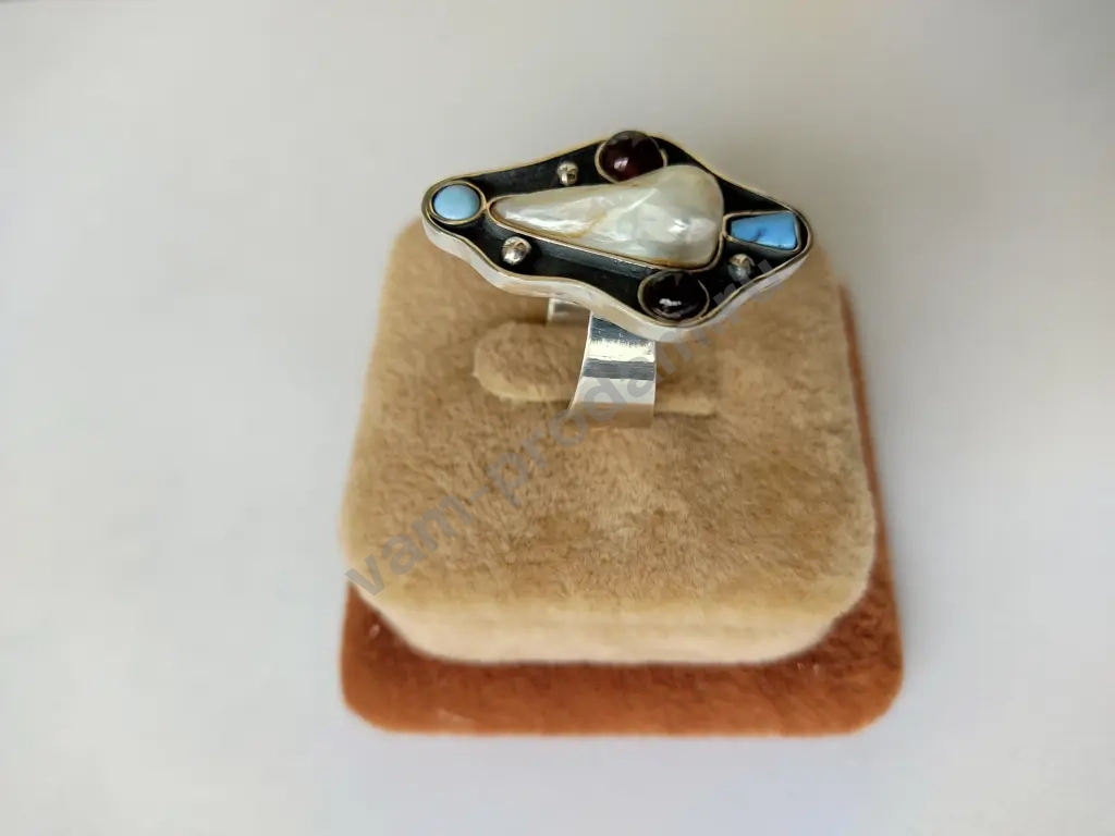 кольцо,кулон,серебро,чернение,барочный жемчуг,бирюза,гранат,эксклюзивная авторская работа в единственном экземпляре,размер кольца 18
