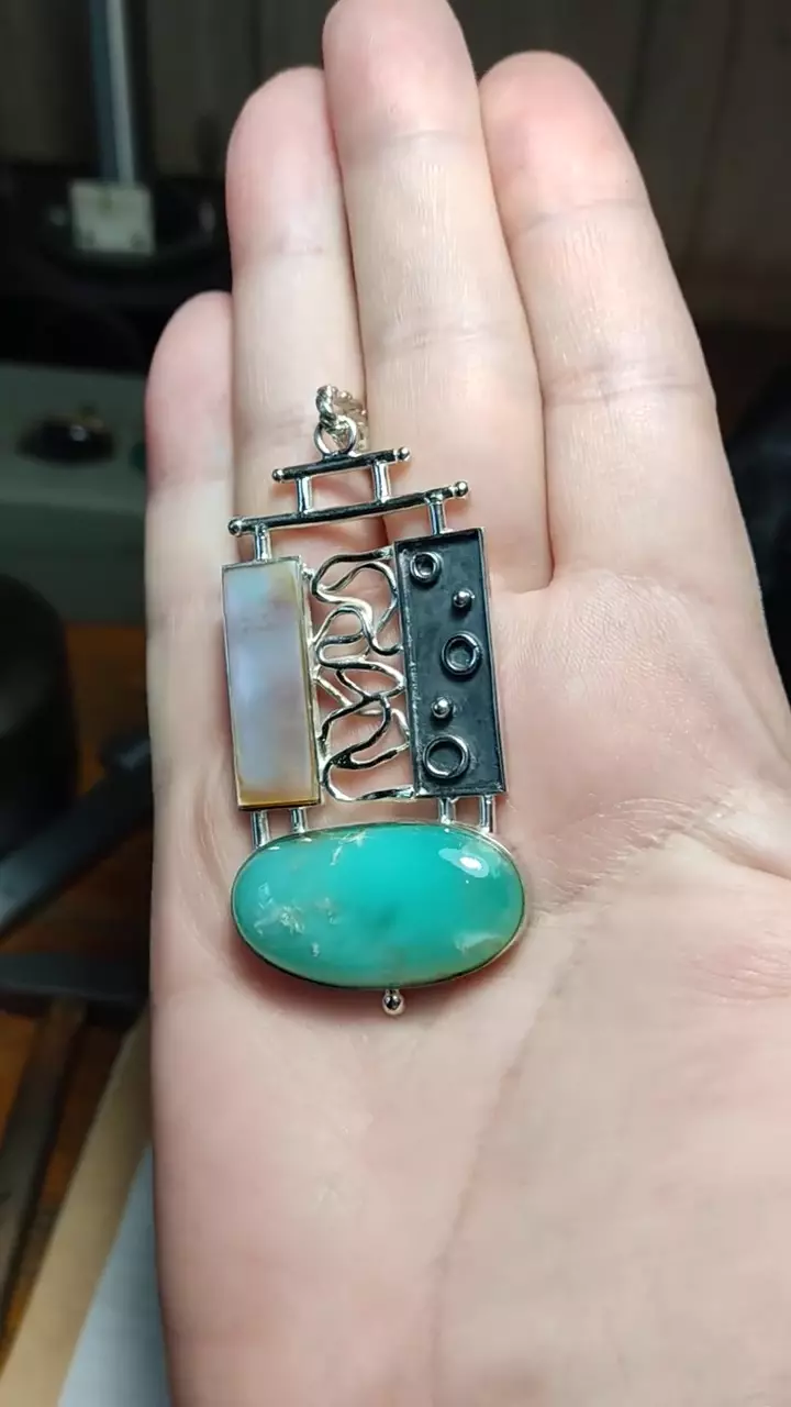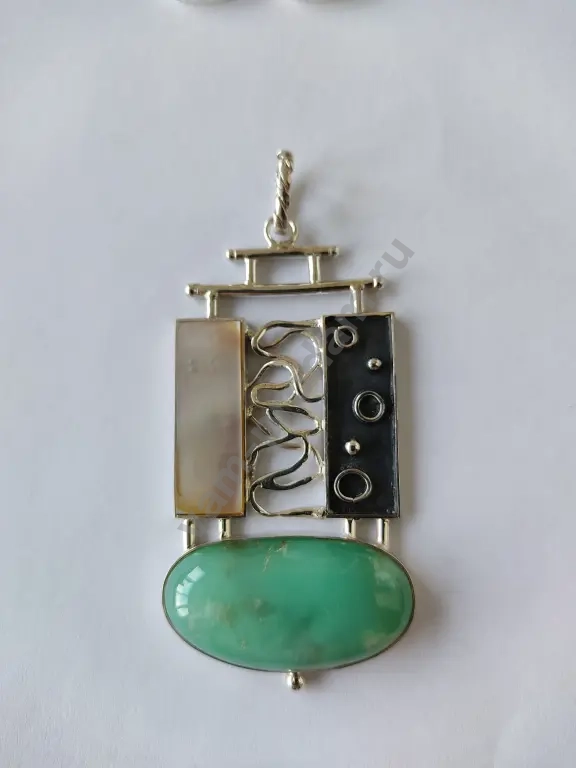 кулон серебро,хризопраз,перламутр,чернение,эксклюзивная авторская работа в единственном экземпляре