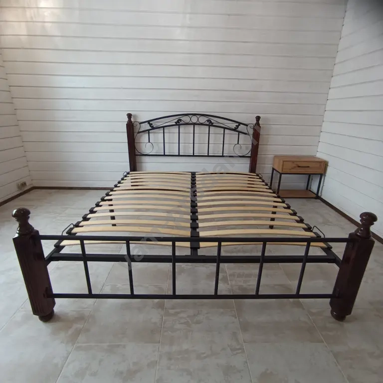 Спинки кроватей изготовлены из металлической трубы и покрыты антикоррозийной, порошковой краской, опоры «основные» изготовлены из массива березы покрытые специальным, цветным лаком.