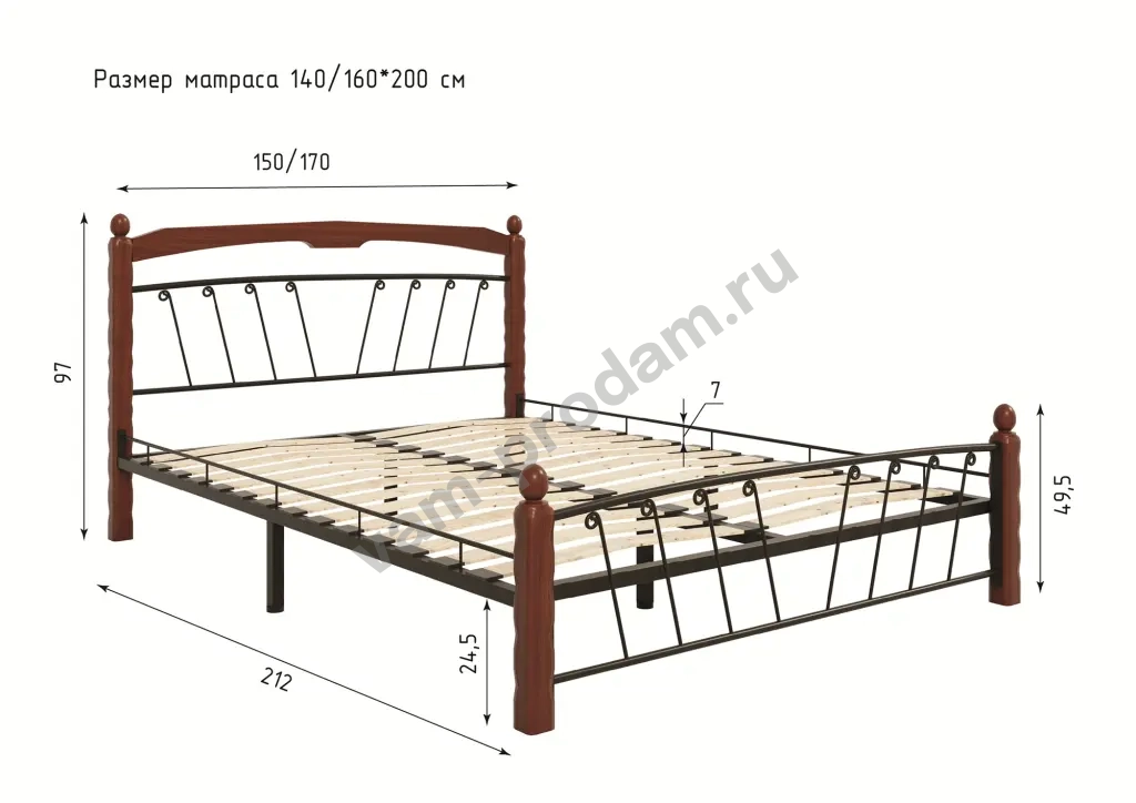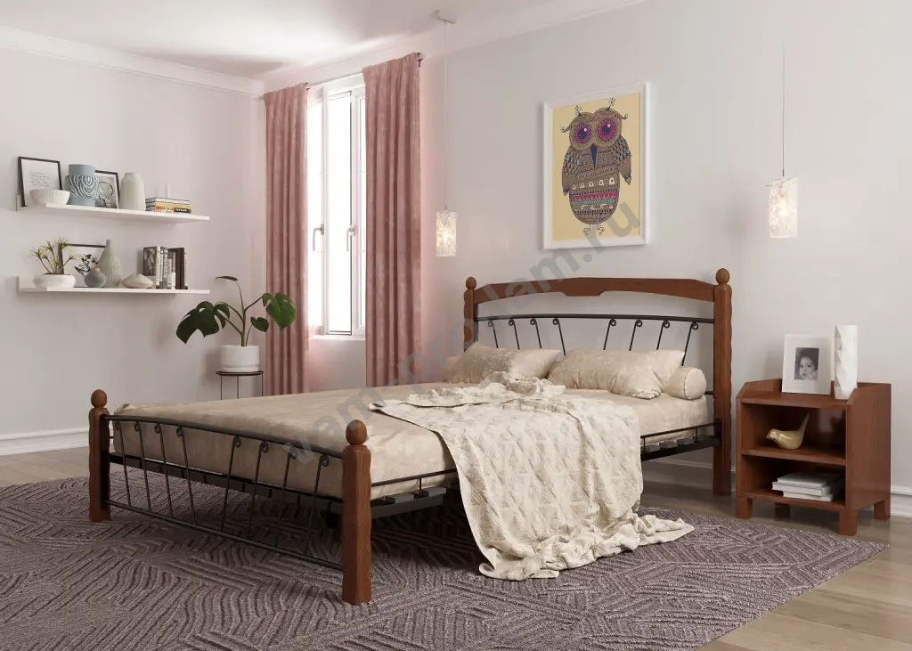 Опоры (основные) по углам кровати изготовлены из массива березы и покрыты специальным, цветным лаком (Шоколад, махагон или белый).
