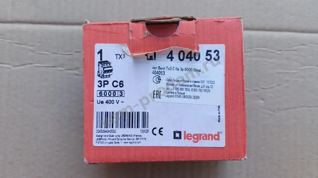 Автоматический выключатель трёхфазный Трёхфазный автомат legrand 404053 - С6а 6000 Цена = 300р