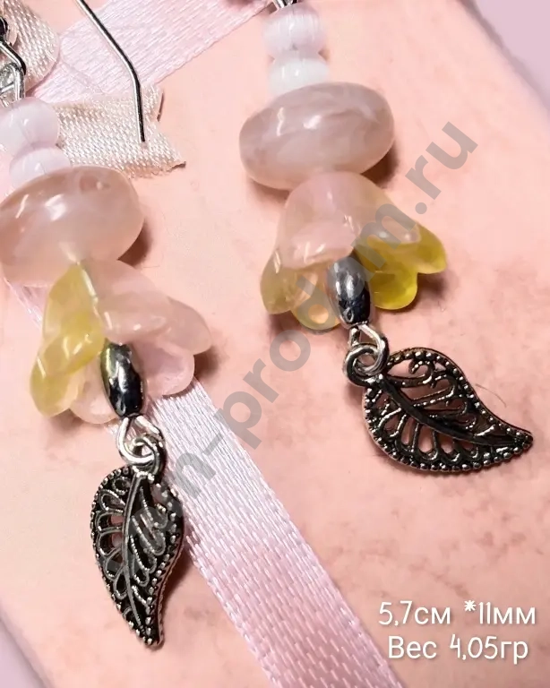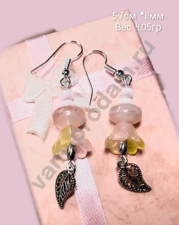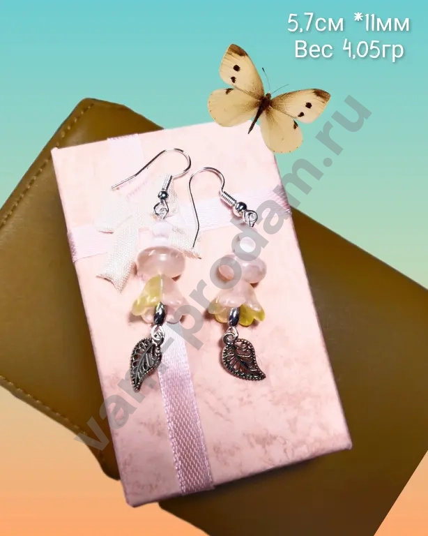 Нежные висячие серьги — воплощение весенней лёгкости и утончённости. Украшение сочетает в себе изысканные элементы из стекла, чешских бусин и металлической подвески, создавая гармоничный и романтичный образ.