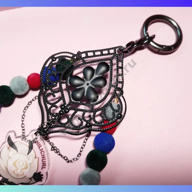 Детали: декоративная цепочка соединяет элементы брелока, добавляя изысканности.