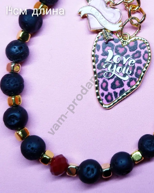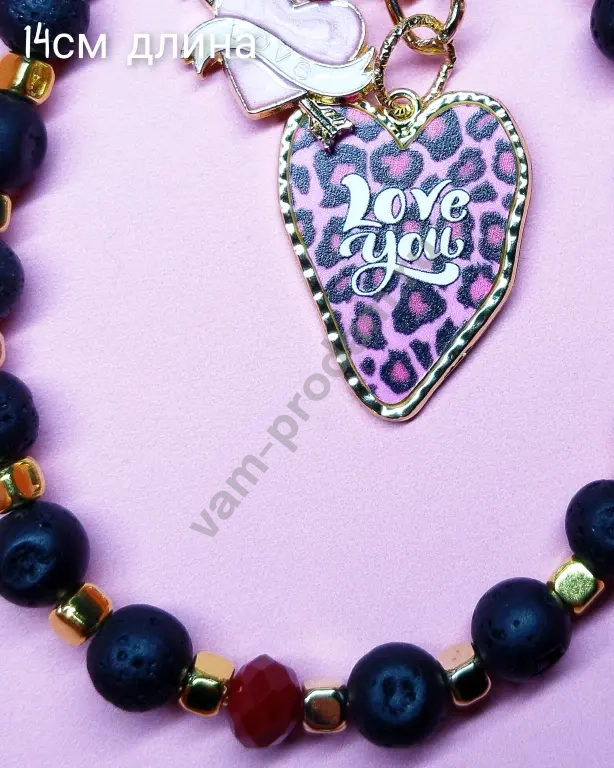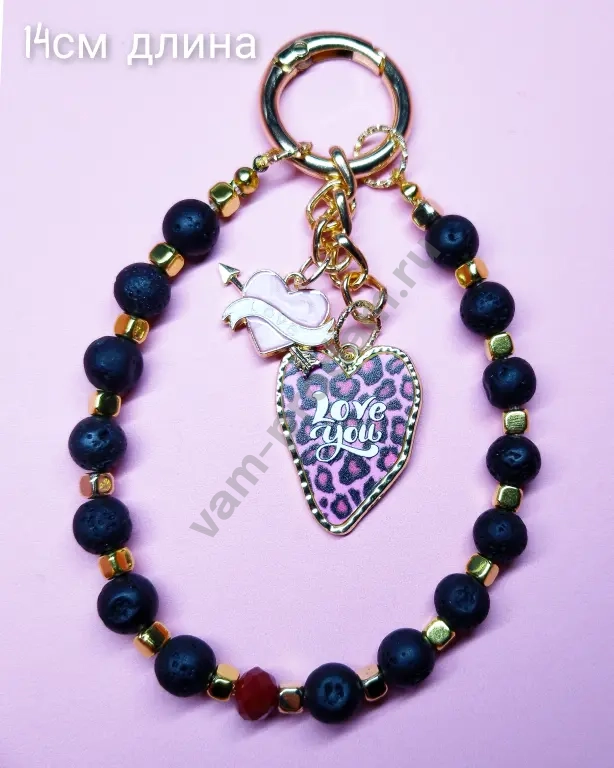 Брелок выполнен из Натурального камня чёрной лавы 8 мм и пластика в золотом цвете 3мм