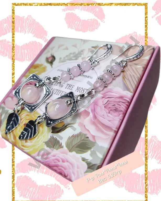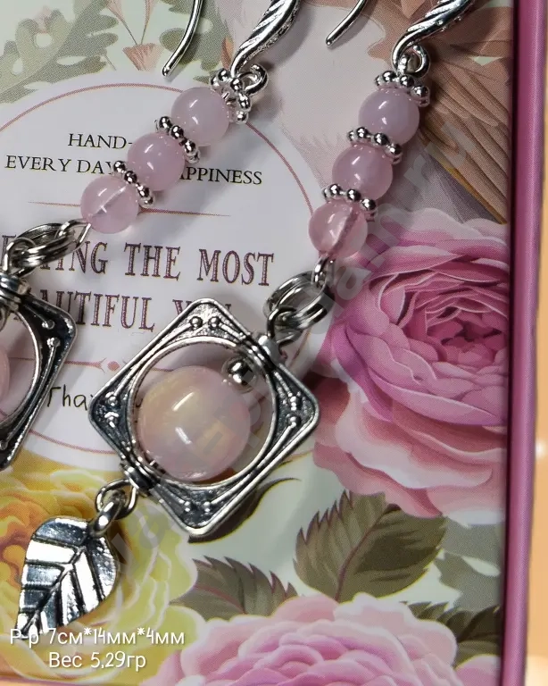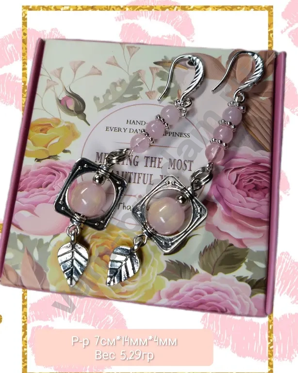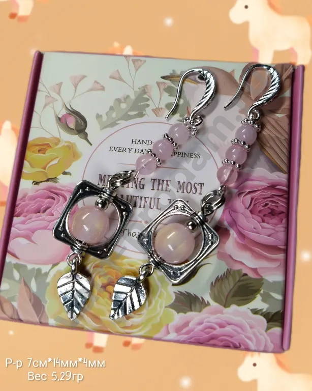Этот изысканный аксессуар сочетает в себе природную красоту розового кварца и изящество металлической оправы — каждая пара создаётся с любовью и вниманием к деталям.