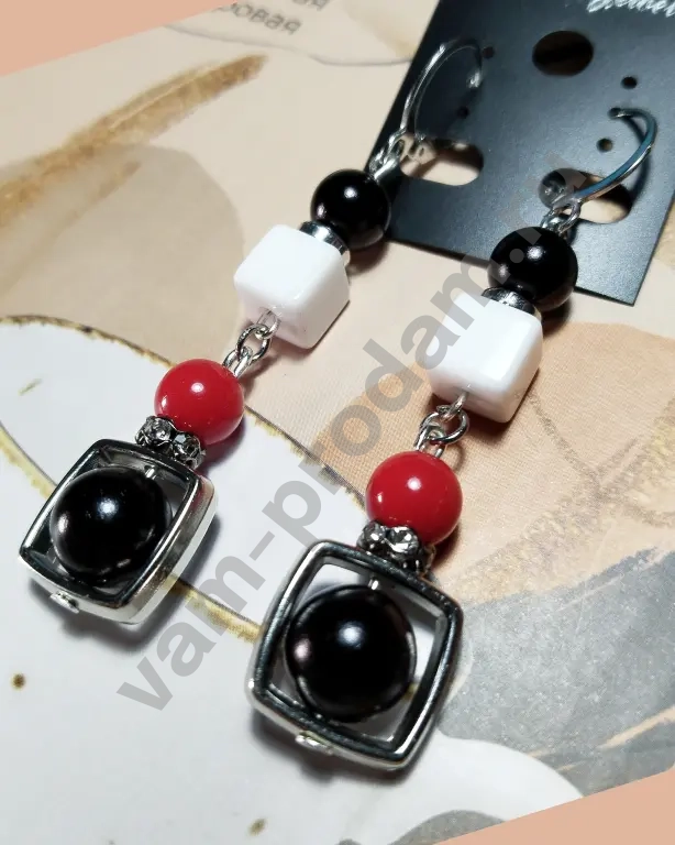 * завершает композицию крупная чёрная бусина в пластиковой квадратной оправе.