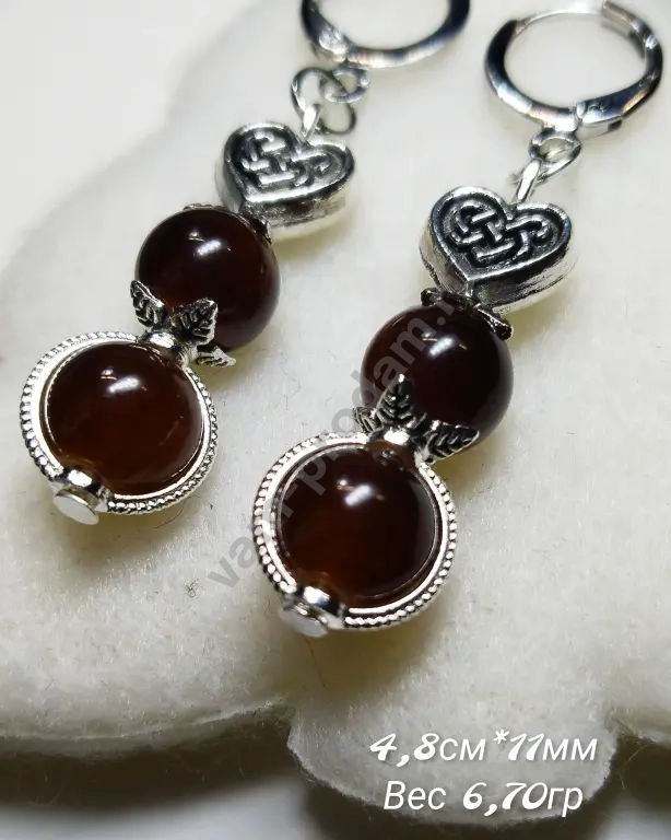 Серьги „Кельтский шёпот“ Ручная работа — изысканное сочетание стеклянных бусин глубокого бордово-коричневого оттенка и серебристого металла.