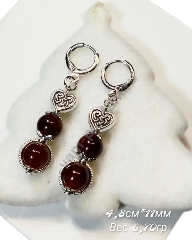 Бусины диаметром 8 мм имитируют благородный сердолик, придавая украшению роскошь и глубину.