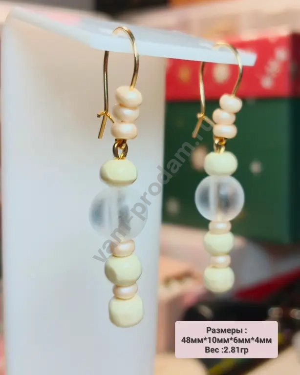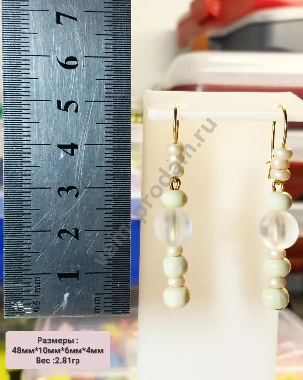 48 × 10 × 6 × 4 мм — серьги достаточно выразительные, но не громоздкие.