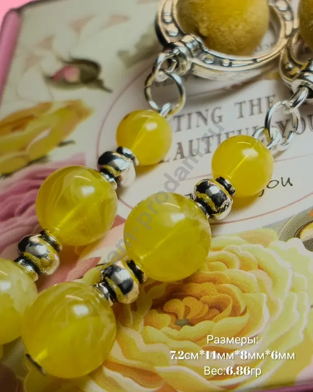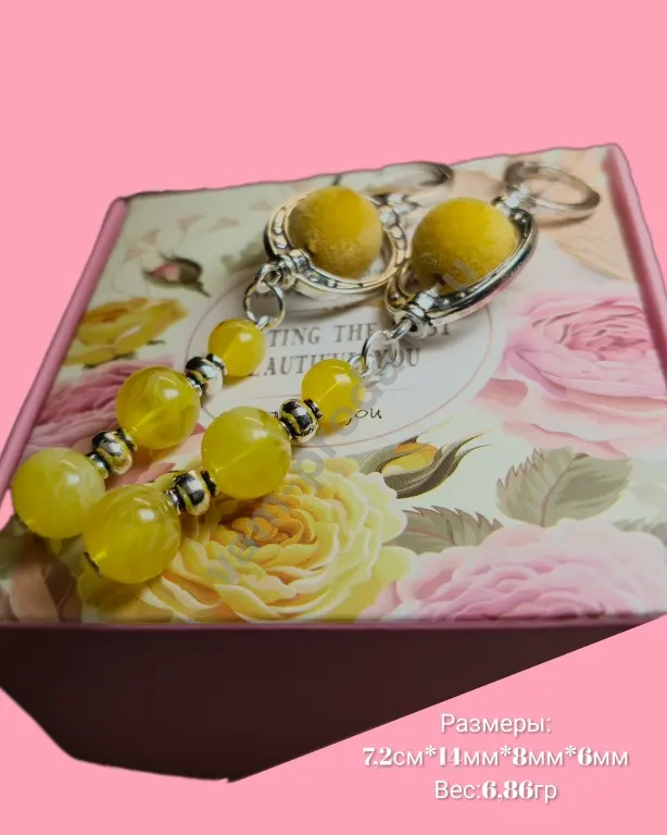 - **Материал:** акрил (8 мм и 6 мм), бархатные бусины (10 мм), металлические вставки.