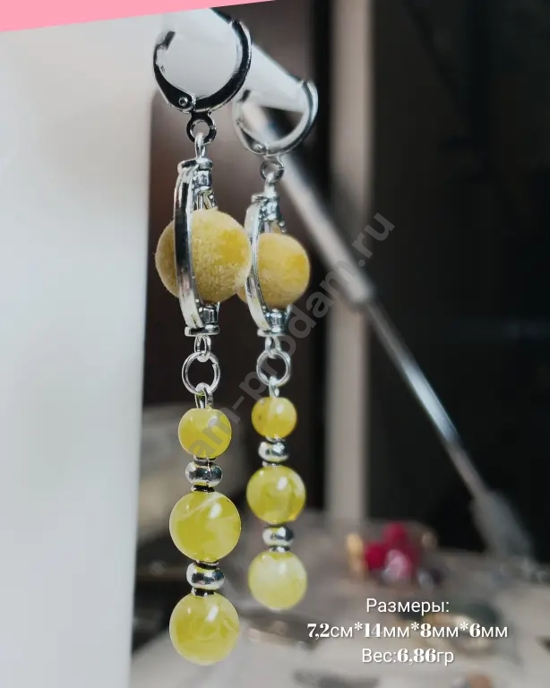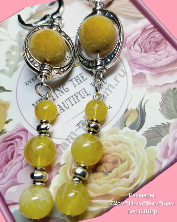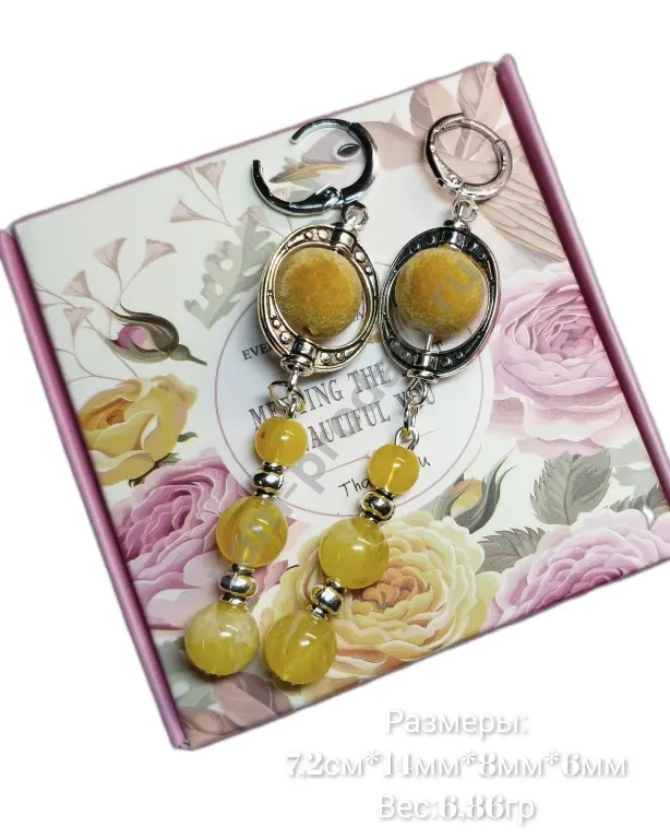 Откройте для себя очарование утончённости с серьгами «Янтарная фантазия»! Эта изысканная пара украшений сочетает в себе нежность бархатных бусин и лёгкость акриловых элементов.