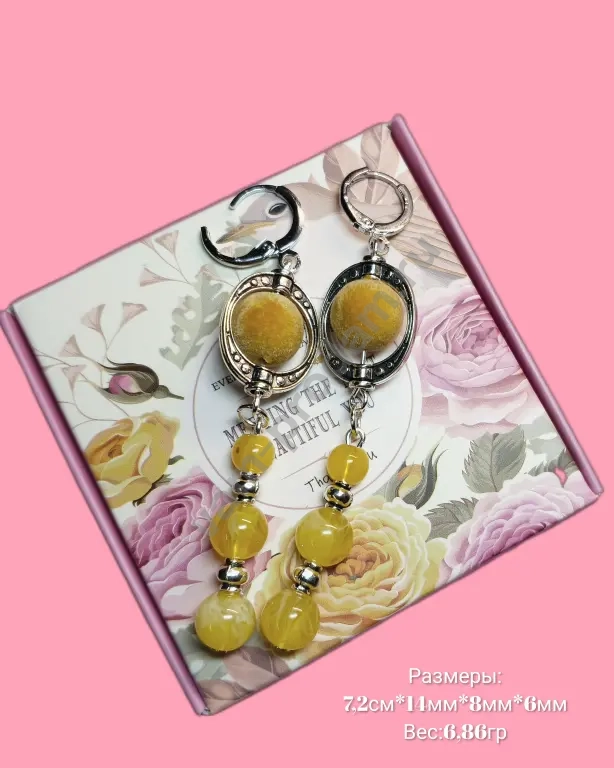 Эти серьги станут ярким акцентом в любом образе — от повседневного до вечернего. Добавьте немного солнечного настроения в свою коллекцию украшений!