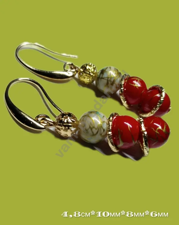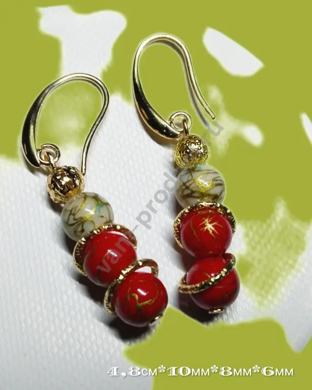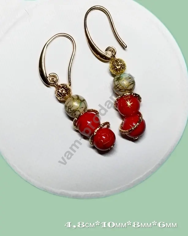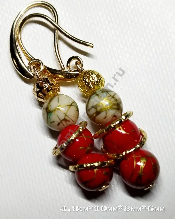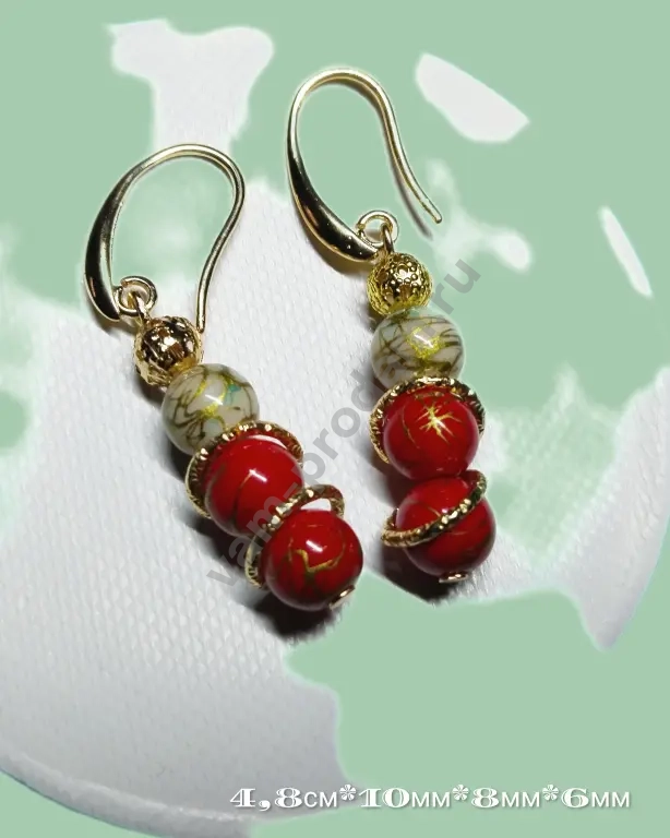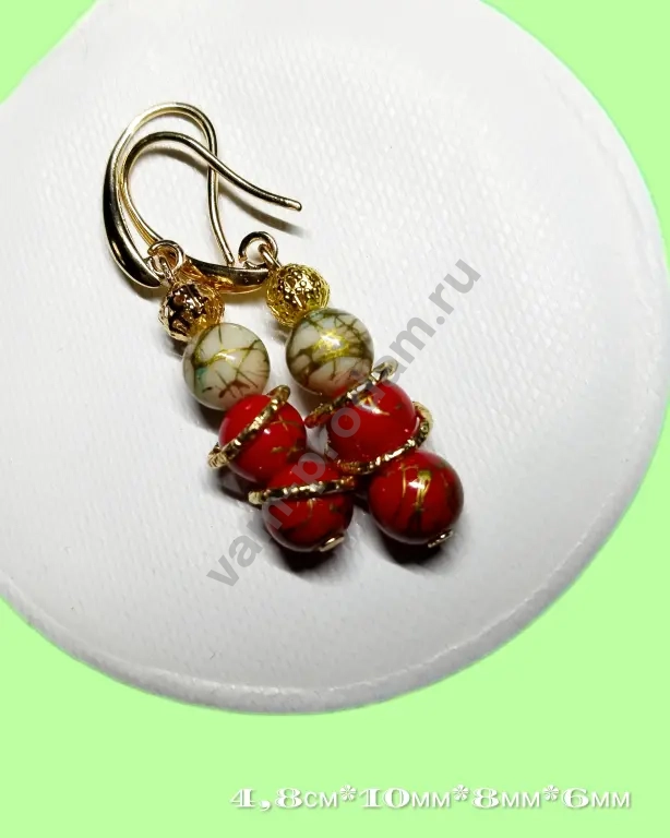 * Размеры: 4,8 см в длину, диаметр бусин — 8 мм и 6 мм., кольца 10мм