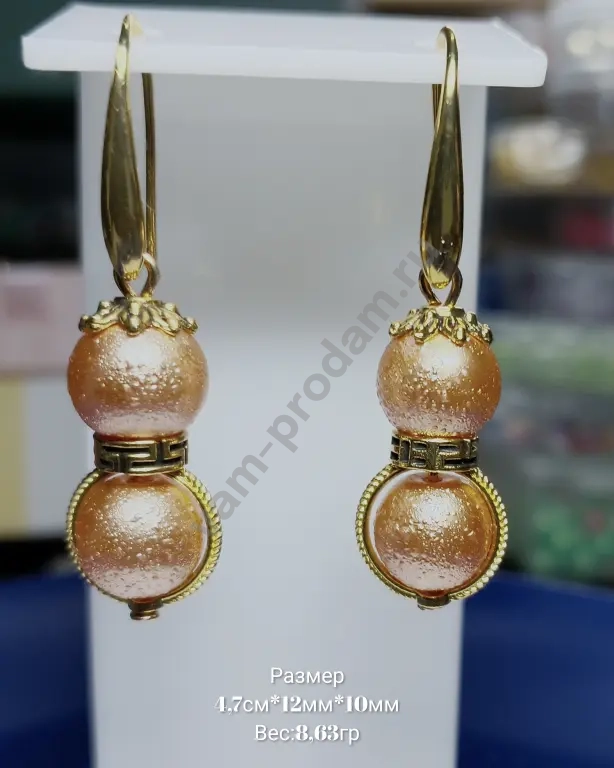 Цвет: золотистый (фурнитура), персиково-золотистый (бусины).