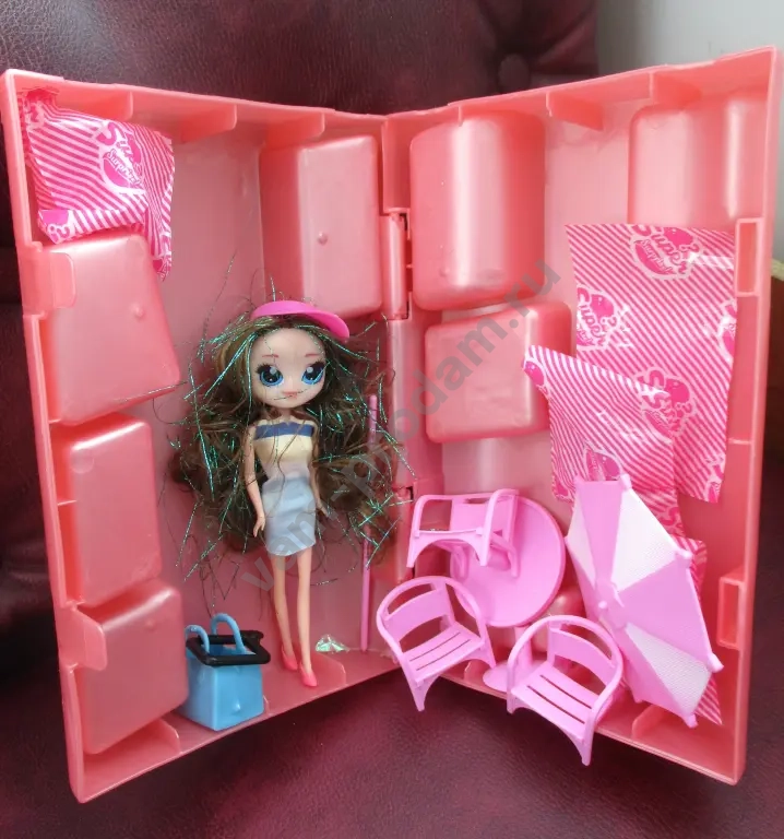 Новый кукольный набор: чемоданчик с красивой куклой и с разными аксессуарами.
