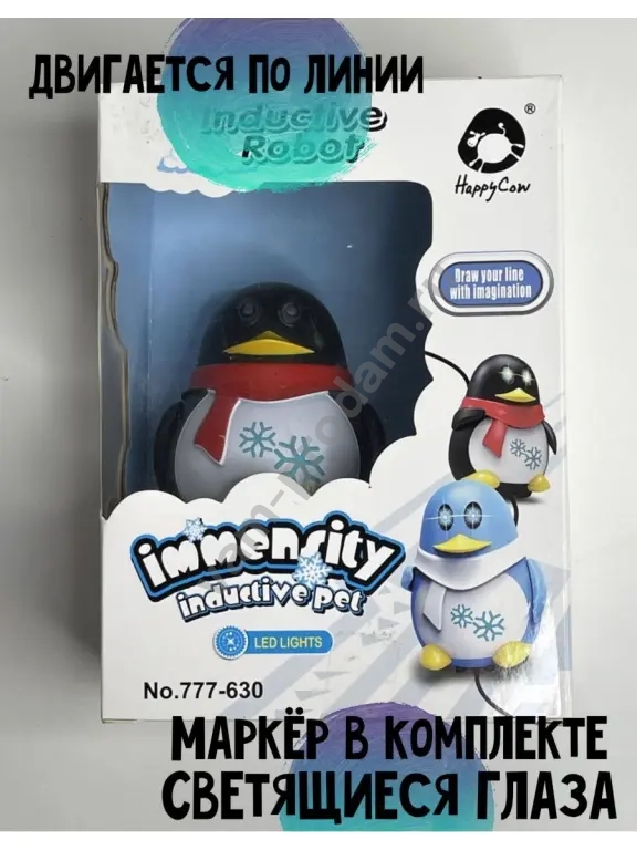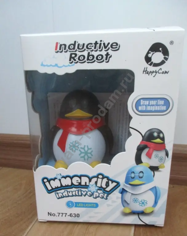 Новый Индуктивный Робот- Пингвинчик.В комплекте есть маркер, им рисуется линия. По нарисованной линии двигается пингвин, используя линию в качестве маршрута. Пингвинчик со световыми эффекты, глаза светятся.
