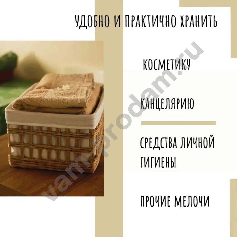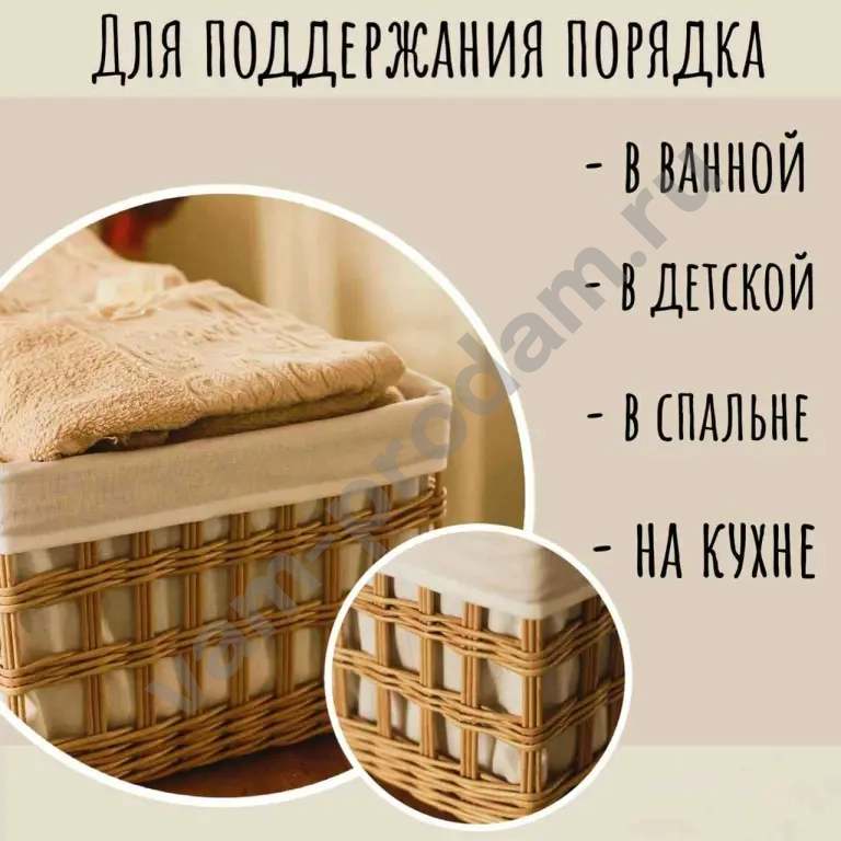 Плетеный короб для хранения, с чехлом из бязи
