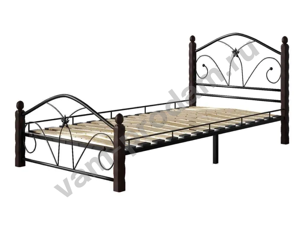 Опоры резные по углам кровати изготовлены из массива березы покрытые специальным, цветным лаком (Шоколад, махагон или белый).