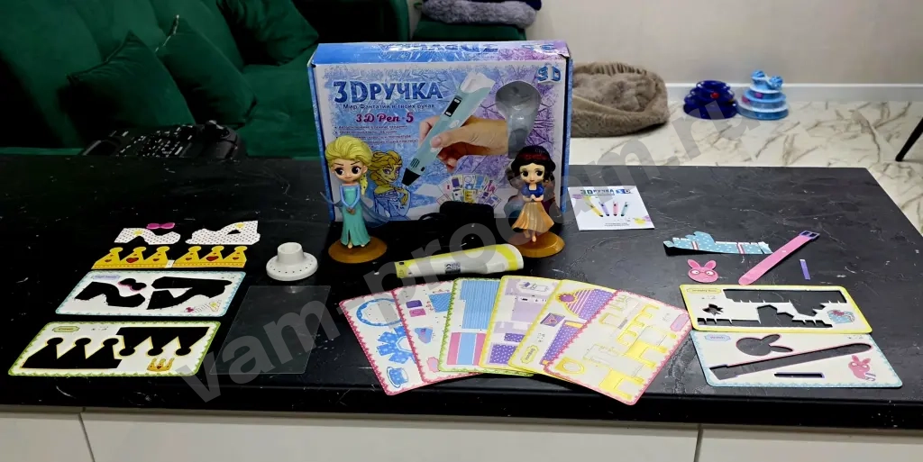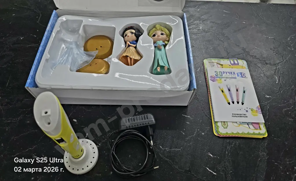 Продам комплект 3D ручка с блоком зарядки, много пластика для неё, так же в комплекте игрушка Эльза и Белоснежка