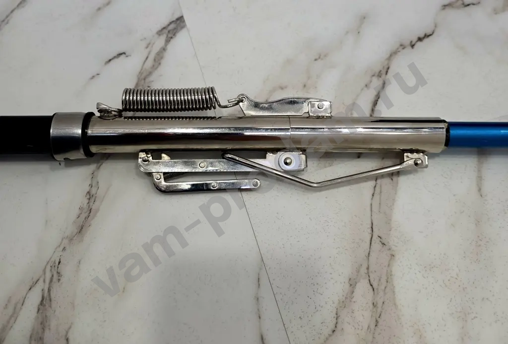 Принцип работы спиннинга довольно простой, леска продевается в кольцо спускового крючка и при ее натяжении срабатывает "подсекатель", в результате спиннинг выпрямляется, предотвращая "побег" рыбы.