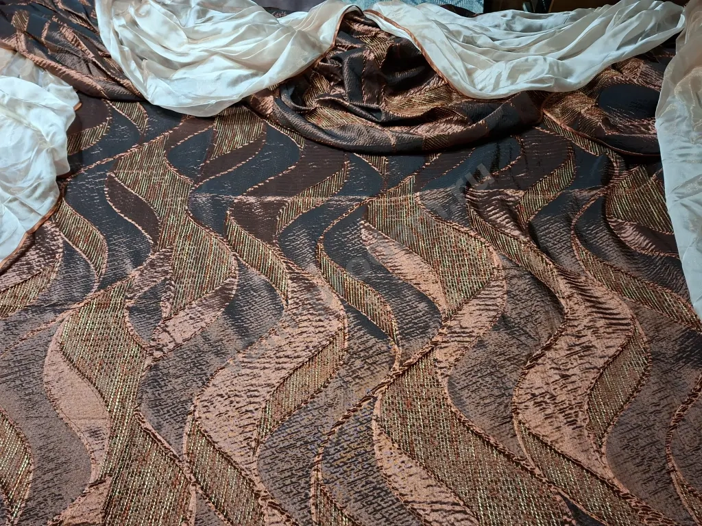 Шторы ночные с ламбрикеном: цвет- бордовый, ширина-120 см, высота-260 см. Ламбрикен: ширина-270 см, высота-127см, вуаль- розово -бежевая, есть шторная лента, штора сшита на заказ, качество отличное, не выгорела, нет пятен и дыр, цена-2000 рублей.