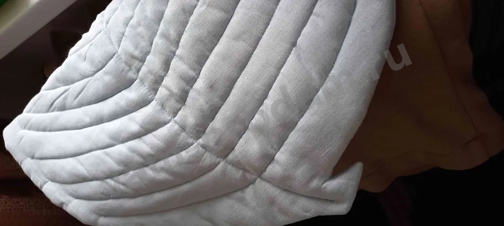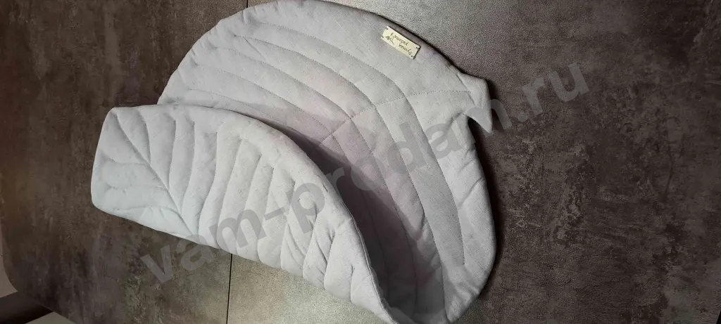 Универсальное применение. Для кроватки, для коляски, прикроватный коврик, для фото малыша. Ткань полулён (хлопок+лён), синтепон. Цвет бледно-голубой. Размер 71х51 см.
