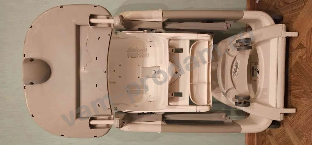 Все функции (качели, шезлонг, регулировки наклона и высоты сидения, подножки) исправны. Остальное отобразила на фото (есть трещина на обратной стороне столика, но она никак не влияет на эксплуатацию (ножки не задевают эту часть столика)