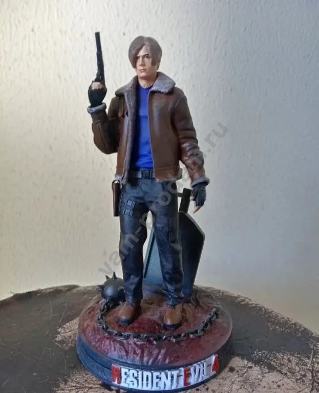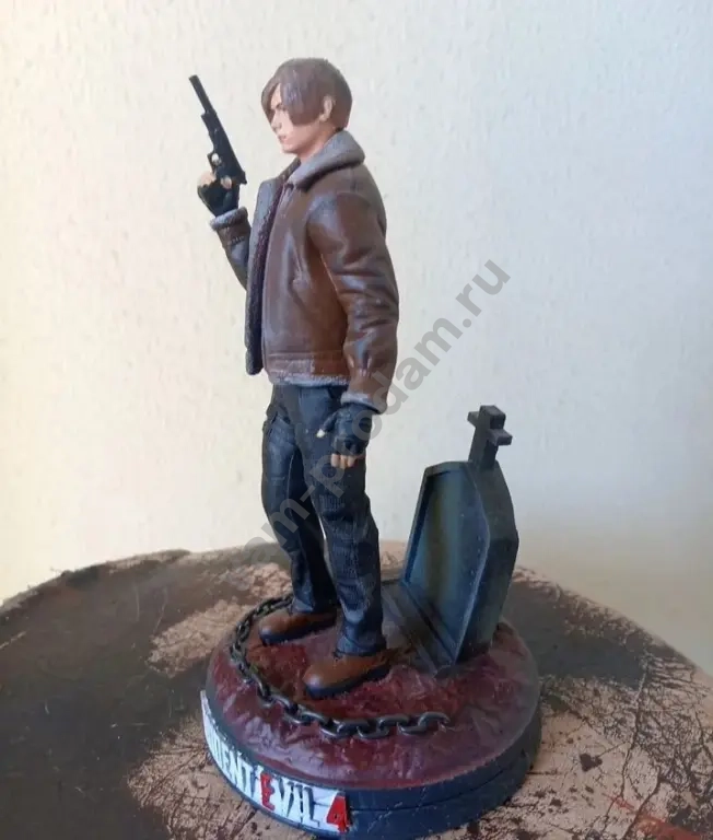 Фигурка Леон Кеннеди, входит в отряд специального назначения по борьбе с биооружием, его любимым оружием является пистолет, дробовик, снайперская винтовка, хорошо владеет ножом, умен, но часто рискует из за чего подводит спецоперацию на грань срыва, является главным фаворитом Ады Вонг.