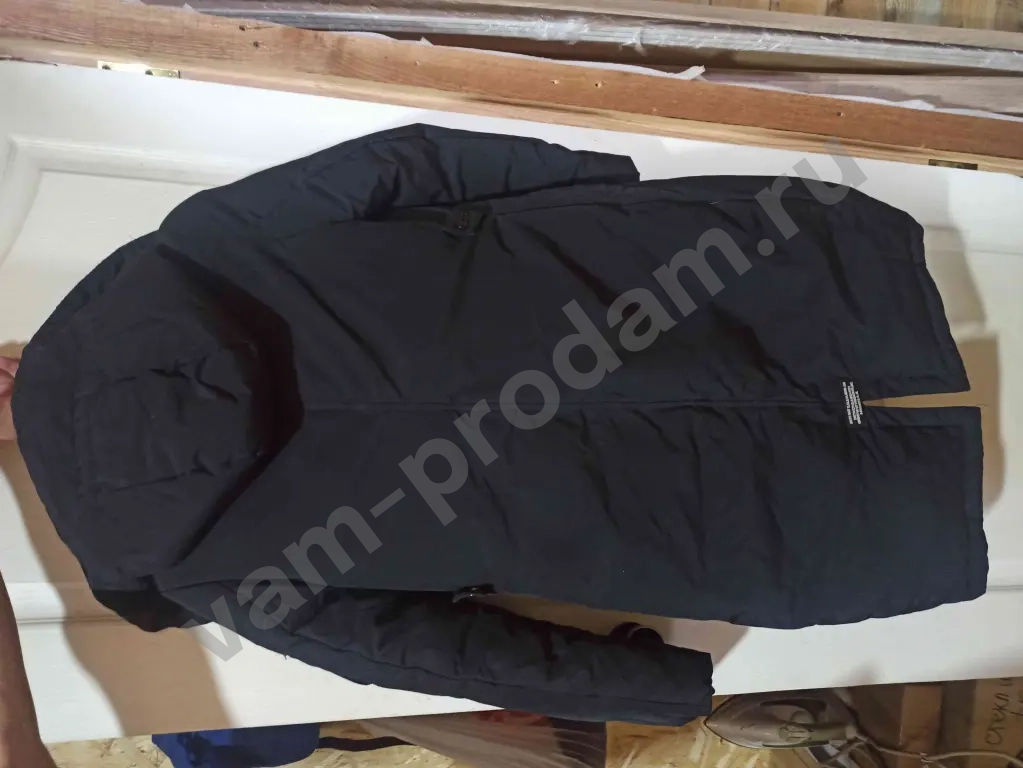 Пуховик зимний на 44 размер. Удлиненный до колена. Наполнитель - пух. По типу парки. С капюшоном, носился одну зиму, молнии все работают, шнурки и завязки в полной сохранности